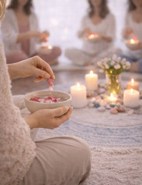 Ein Raum für Frauen, die bereit sind, sich selbst ehrlich zu begegnen – getragen von Ritual, Meditation und echter Gemeinschaft. Ein Ort, an dem Du wieder bei Dir selbst ankommen kannst.